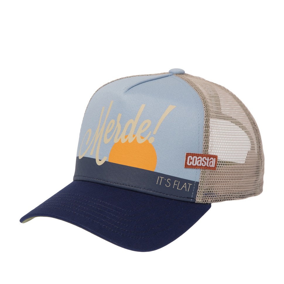 Бейсболка с бежевой сеточкой HFT Merde от немецкого бренда Coastal. На передней структурированной панели - матовая печать изображения морского пейзажа и надписи Merde/It’s flat. Это выражение используется для ситуации, когда волны на море не подходят для серфинга, и это может вызывать разочарование у серферов. Фраза Merde, it’s flat переводится как «Черт, волны плоские». Coastal с своих коллекциях воспевает авантюризм, искусно приправленный беззаботным пляжным вайбом, юмором, провокационными надписями и принтами. Серфинг - олицетворение всех этих составляющих, поэтому он занимает важное место в ДНК бренда. Пластиковая застежка и изнанка козырька - травянисто-зеленые. Сзади и спереди - фирменные тканевые ярлычки. Изнаночные швы обшиты брендированной тканью. Внутри по окружности головы вшита лента для комфортной посадки. Длина козырька - 7 см, глубина бейсболки - 12 см.