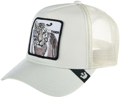 Бейсболка с тигром KILLER TIGER из культовой коллекции Animal Farm. На передней панели белой бейсболки, выполненной из искусственной кожи, – нашивка с изображением белого тигра и соответствующей надписью. На сленге «tiger» означает «самостоятельный, независимый, хитрый человек». На изогнутом козырьке бейсболки – ярлычок с логотипом бренда. Размер бейсболки регулируется с помощью пластиковой застежки. Длина козырька – 7 см, глубина – 11 см. Создатели бренда в коллекциях 2022 года обновили систему защиты от подделок: текстильный ярлычок у застежки, а также брендированные швы и измененный дизайн фирменной нашивки внутри.