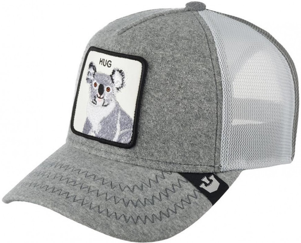 Серая бейсболка с коалой MR. NICE GUY из культовой коллекции Goorin Brothers. На передней панели бейсболки - нашивка из экокожи с изображением коалы и надписью HUG. Дословно надпись переводится как «обнимать», «сжимать в объятиях» или «обнимашки». Передняя часть бейсболки выполнена из махровой влагопоглощающей хлопковой ткани. Белые и серые сетчатые клинья бейсболки чередуются. Бейсболки Goorin Bros. - эпатаж в духе современной молодежи. Изогнутый козырек - из серого трикотажа, на котором – ярлычок с логотипом бренда в виде замка. Размер бейсболки регулируется с помощью бело-серой пластиковой застежки. Внутренняя лента и изнанка козырька - из серой махровой влагопоглощающая ткани. Длина козырька – 6,5 см, глубина бейсболки – 11 см. Создатели бренда в коллекциях 2022 года обновили систему защиты от подделок: текстильный ярлычок у застежки, а также брендированные швы и измененный дизайн фирменной нашивки внутри.