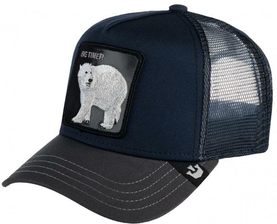 Темно-синяя бейсболка с белым медведем ICEBERG из культовой коллекции Animal Farm. Бейсболка выполнена из хлопка и полиэстера. На передней твердой панели бейсболки – нашивка с изображением белого медведя и надписью Big Timer, что в переводе со сленга означает «успешный человек, который многое успел в жизни». Бейсболки Goorin Bros. - легкая самоирония в духе современной молодёжи. Размер бейсболки регулируется с помощью пластиковой темно-синей застежки. Изогнутый козырек дополнен четырьмя декоративными строчками и ярлычком с логотипом бренда. Для вентиляции предусмотрена однослойная сеточка. Длина козырька – 7 см, глубина – 11 см. Создатели бренда в коллекциях 2022 года обновили систему защиты от подделок: текстильный ярлычок у застежки, а также брендированные швы и измененный дизайн фирменной нашивки внутри.