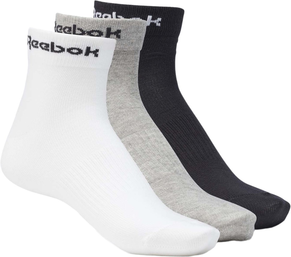 Бросьте вызов гравитации. Эти тренировочные носки имеют ребристые манжеты, чтобы они не скользили в критические моменты. Фирменный знак Reebok на пятке обеспечивает легкий спортивный стиль. 3 штуки в упаковке.